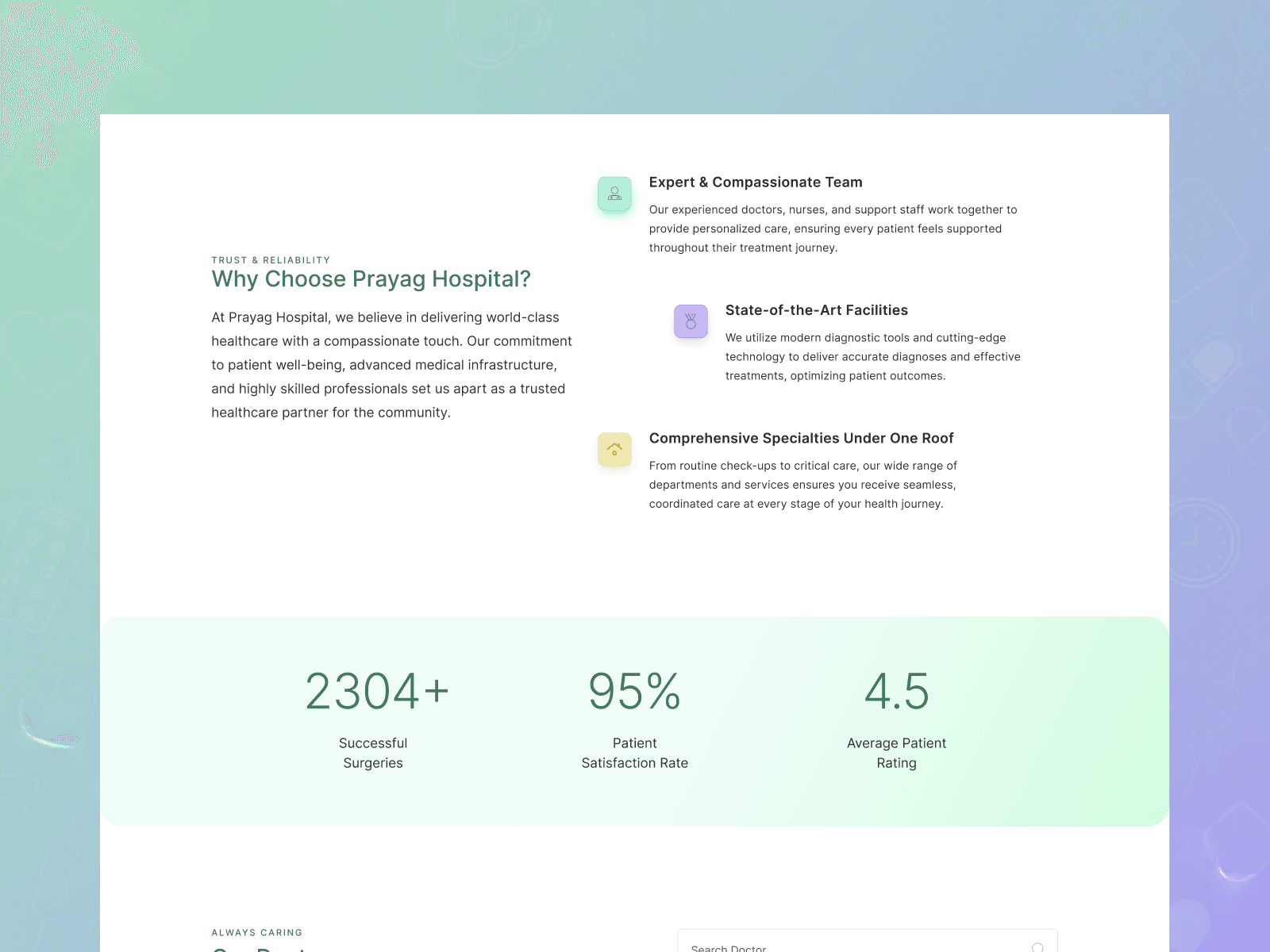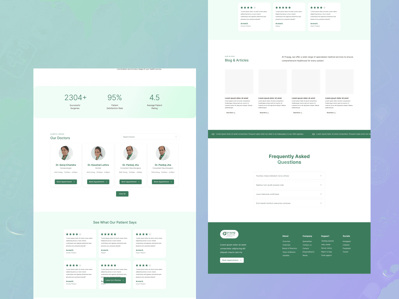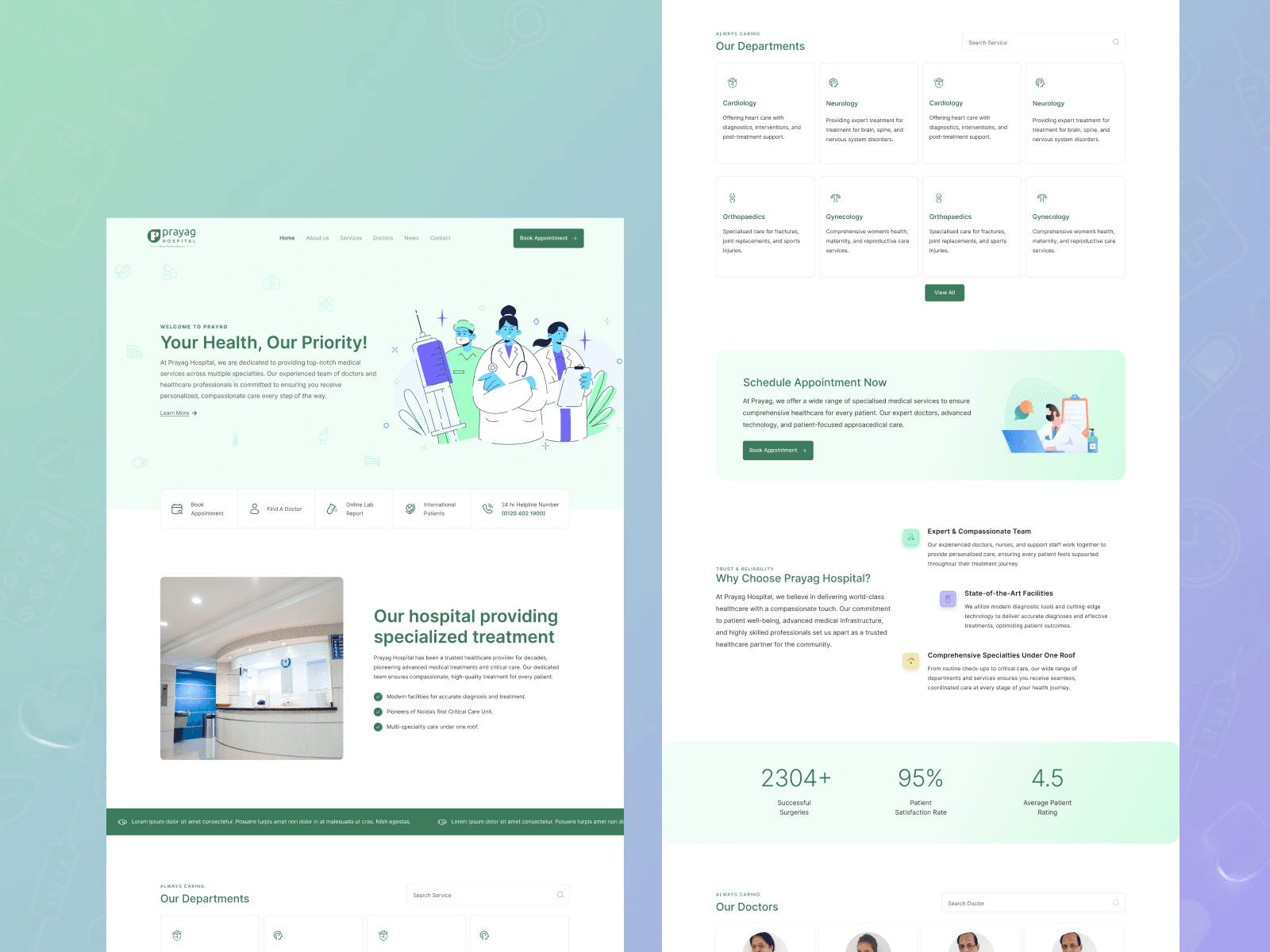 Healthcare websites often suffer from information overload, unclear navigation, and low trust signals. The challenge was to present complex medical information, multiple departments, and doctor credentials in a way that remains human, readable, and actionable. Special care was required to balance visual softness with clinical credibility and operational clarity.