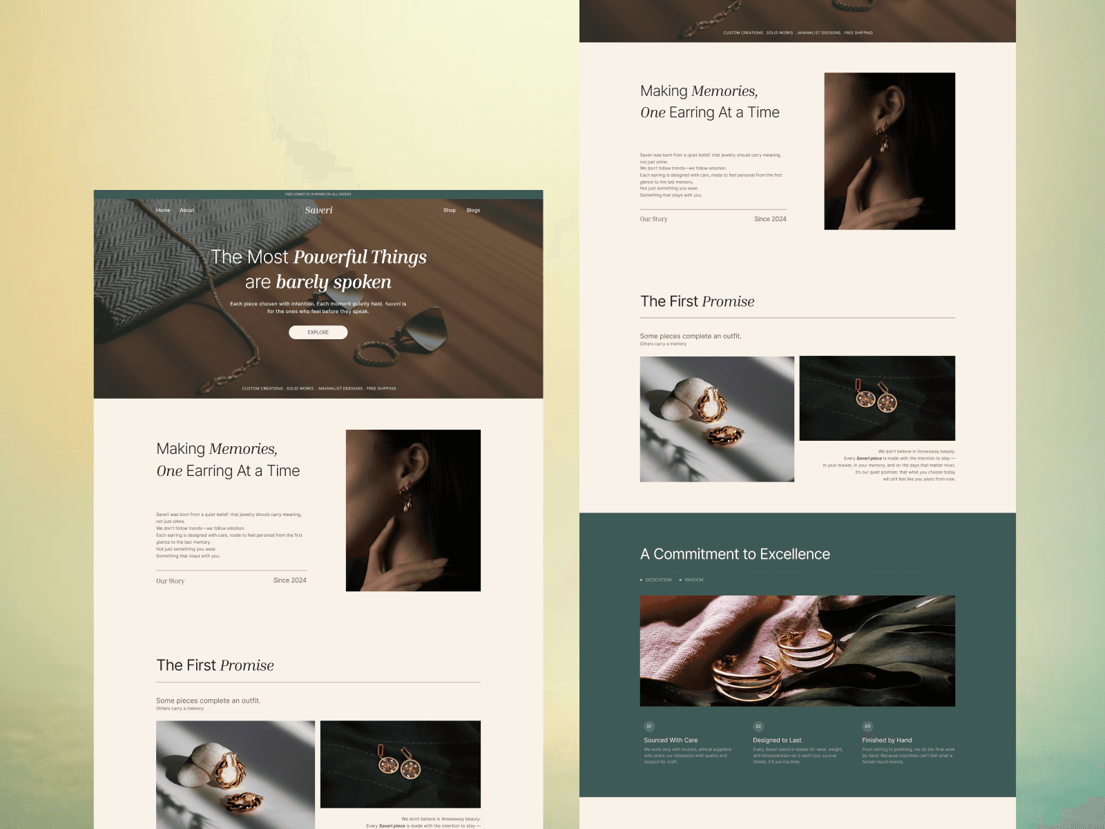 The goal was to design a brand-led e-commerce experience that prioritizes emotion over urgency. Instead of discounts or pushy CTAs, the site focuses on storytelling, craftsmanship, and restraint, allowing users to connect with the product before being asked to buy.